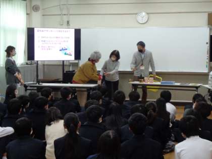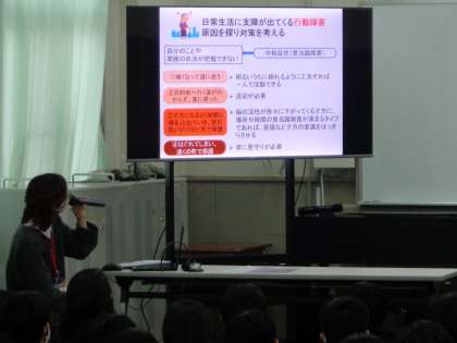8年生は視聴覚室で認知症サポーター養成講座を受講しました。