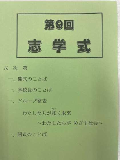 本日、小中一貫校 むくのき学園の中期区分の修了として「志学式」を挙行しております。