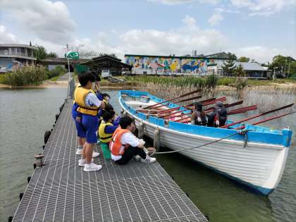 クラスごとに大型の手漕ぎの船「カッター」に乗り、