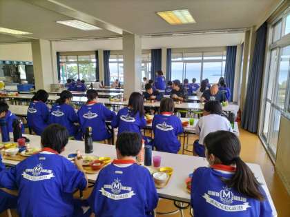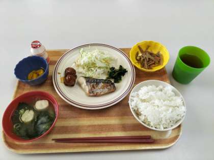 ご飯・みそ汁・サラダ・みかん・乳酸菌飲料