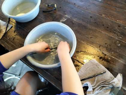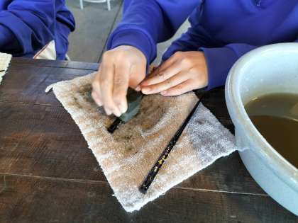本日最初の体験活動「塗り箸づくり」です。