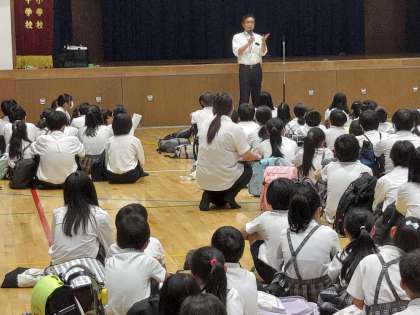 体育館に集まって校長先生から