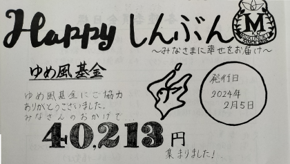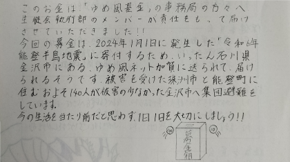 集まったお金は、生徒会が代表して「ゆめ風基金」の