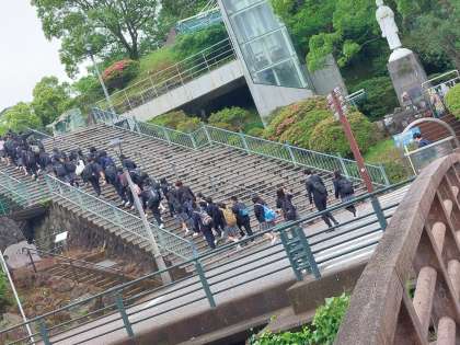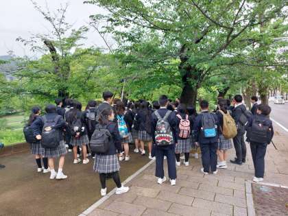 原爆資料館にむけて移動中にバスガイドさんにいろいろ教えていただきました!
