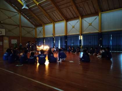 キャンドルを囲んでの怖い話でスタートし、各班が企画し運営するミニゲーム大会で盛り上がっています!
