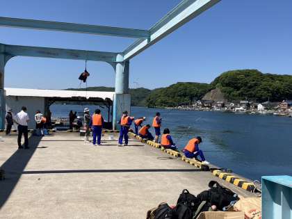 第3グループの波止場釣り体験! さかなも釣られないように作戦を考えたかな、最初ほど釣れなくなってしまいました…(;_;)