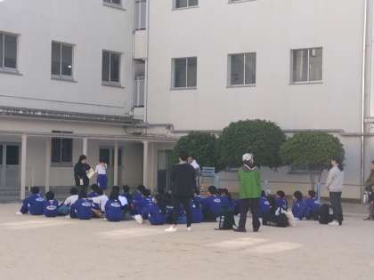 中庭で解散式をしています。