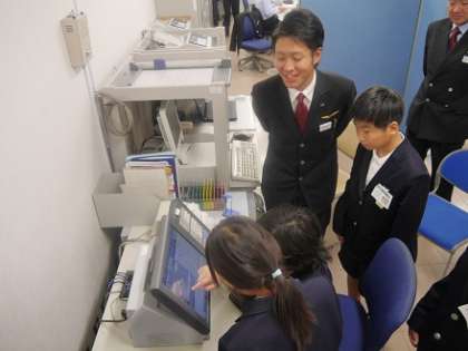 11月19日(木)午前、4年生は仕事体験の2日目です。教員が引率し、各事業所に向かいました。うどん・丼のお店【写真左】では、店内清掃、買い出しの後、試食用のうどんを麺棒で伸ばして切る作業をしました。なかなか厚みが均一にならず苦労しましたが、丁寧に教えていただき、なんとか形になりました。また、JR西日本旅客鉄道会社【写真右】では、乗車券、特急券を発行する機械の操作を教えていただきました。ドキドキしながらもいくつかのパターンをシミュレーションし、全員が発行することができました。