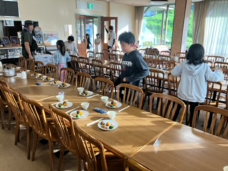 朝食をいただきました。今日は登山があるので、しっかり食べようと話がありました。