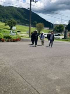 下山後、登った山を眺めながらスイカをいただきました。
