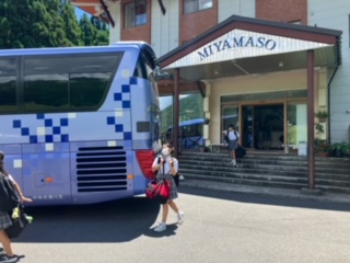 予定通りの時刻にバスに乗車し、ハチ高原を出発しました。