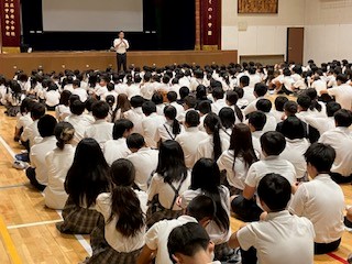 最後に、生活指導担当の先生から、計画的に夏休みを過ごすことができたかなど、夏休みの振り返りのお話がありました。