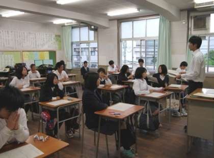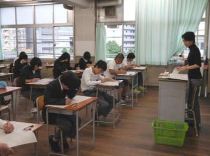 10月16日(水)、台風26号の影響が心配されていましたが、予定どおり中間テスト第一日目を実施することができました。今日は理科、社会、技術家庭の三科目の実施です。生徒の皆さんは、テスト勉強(家庭学習)で復習をしてきた成果を精一杯発揮しようと真剣に取組んでいました。最後まであきらめずに「書く」力を引き出すことはできたでしょうか。【写真は2年1組、2組です】