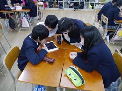 12月22日(火) 3・4限、6年生ではキャリア教育の一環として、学習ソフトウェア開発を行っている株式会社まなゲー様のご協力により「出前授業」を実施していただきました。アドバイスを受けながら、自分たちで知恵を出し合い、ゲームの要素を取り入れた「漢字の同音異義語」の学習ソフトを製作しています。タブレットで実際に起動させ、学習問題の内容チェック、改善点や遊びの要素について話し合い、班ごとで発表するなど、本格的にソフト開発をしていました。