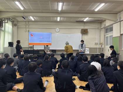 7年生は風船バレー、8年生は認知症サポーター養成講座、9年生は東淀川支援学校との交流及び共同学習でボッチャを行いました。
