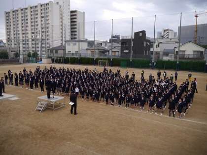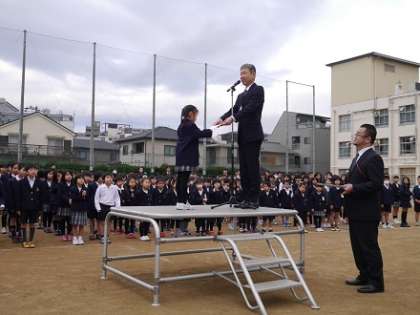 1〜9年生の全学年での始業式が運動場で行われました。校長先生からは、「一年の計は元旦にあり、とあるように、物事を始めるにあたっては最初にきちんとした計画を立てることが大切です」というお話がありました。始業式の後、大阪市読書感想文コンクールの入賞者が発表され、校長先生から当該児童へ表彰状が手渡されました。