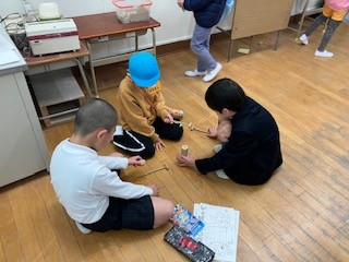 年長さんたちに教えてあげていました。