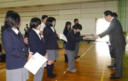 10月21日(月)、全体集会で大阪市立中学校総合文化祭「展示発表・美術の部」の優秀作品表彰を行いました。総合文化祭では、19日(土)、20日(日)に全市文化部代表校による舞台発表なども行われました。舞台発表には、本校からの出演はありませんでしたが、大変すばらしい発表会であったようです。
