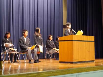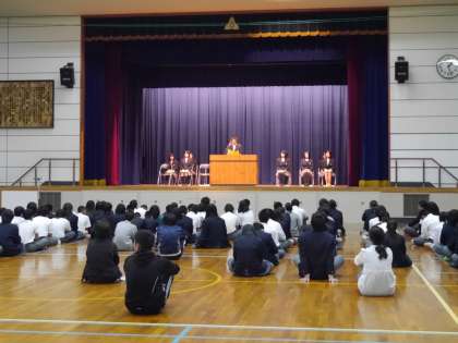 10月24日(木)5限、生徒会役員の立会演説会に2年生の6名の立候補者が堂々と自分自身の思いや、「仲間たちとともに立派な学校をつくりたい」という考えを述べてくれました。応援演説をしてくれた生徒たちも、「この人なら皆さんの期待に応えてくれる人物です」と、力強く語ってくれました。