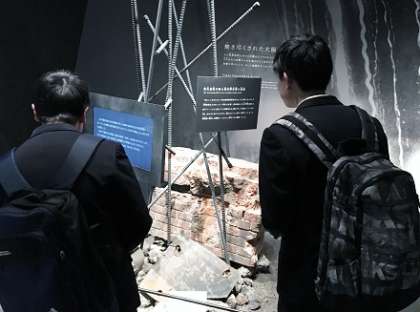 講堂で、語り部さんからの「学童疎開」や「大阪大空襲」など、戦時中の大阪での体験談を中心とする講話を聴きました。その後、各班ごとに展示室などの施設を見学しました。生徒たちは、熱心に意見を出し合いながらワークシートに取り組んでいました。今日「ピースおおさか」で学んだことを、「ナガサキ修学旅行」での学習へつなげていく予定です。