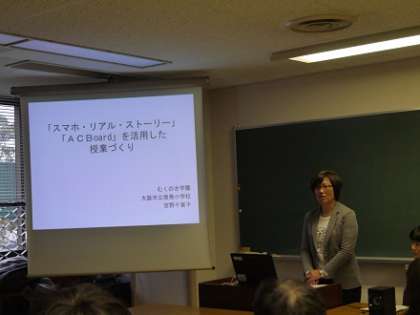その後、分科会「情報モラル教育もアクティブ・ラーニング!」では「むくのき学園」の教職員もスマートフォンをテーマにした情報モラル教育について、ICT機器、アプリを使用した授業の様子を織り交ぜながら、実践を報告しました。他校からの実践事例にも学ばせていただき、有意義な時間となりました。