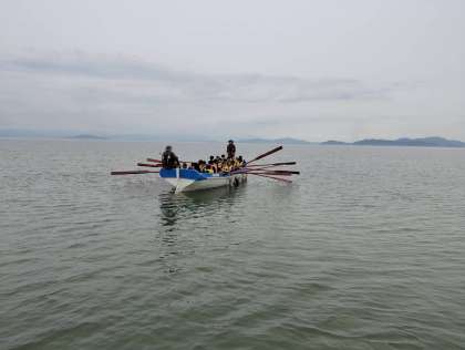 びわ湖上でのカッター訓練です。