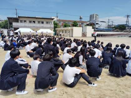 子どもたちは、暑い中でしたが、集中して話を聞くことができました。