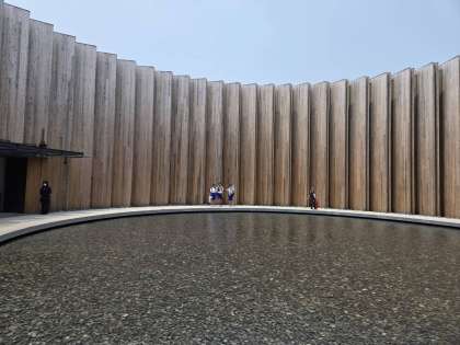その真ん中には、ゴミから生まれ館内で浄化された水の大きな池があります。