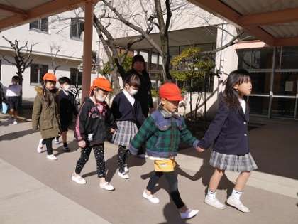 2月16日(火)午前、1年生では先週に引き続き2回目となる保育所との交流会を実施しました。今回は近隣の二つの保育所が参加していただき、お迎えした視聴覚室は園児たちでいっぱいになりました。前回から数日しか経っていないのもかかわらず、1年生児童たちは、さらにお兄さんお姉さんらしく成長しているように見えました。自分たちで考え、手をつなぎ優しくリードし、園児たちも安心しているようすでした。