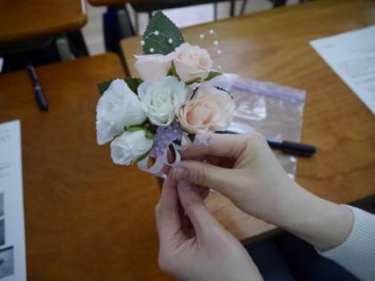 授業参観終了後、各クラスとも日頃の児童のようすをお伝えしながら、なごやかな雰囲気で学級懇談会が行われました。6年生では、卒業式で児童が胸につける「胸花」づくりもしていただき、思い出に残るものになりました。