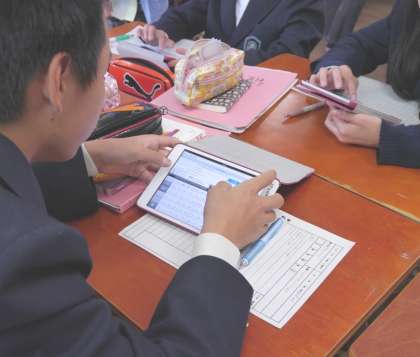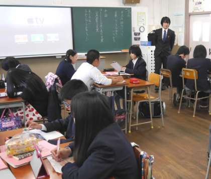 来年度の 『むくのき学園』 開校時における 「ICT活用モデル校」 を受けるにあたっての試行実施ですが、生徒の皆さんのiPadを使いこなす手際よさに感心しました。