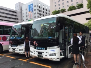 早めの昼食をとり、11時40分過ぎに博多駅に到着しました。みんな元気です。バスに乗り継ぎ、長崎県をめざして走っています。目的地は平和祈念セレモニーを行う平和記念公園で、修学旅行の大きな目的の一つである平和学習で平和の大切さを学びます。