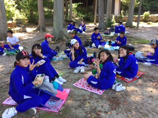 無事にJR近江高島駅に到着しました。乗車マナーも良かったです。日吉神社に移動し、「里山ハイク」を開始しました。新緑が美しく、清らかな水が流れる小川のせせらぎに癒されます。十分に自然を満喫し、ゴールの大炊神社に到着しました。さあ、昼食。きれいな空気の中で、みんなとお弁当を食べました。ホッと楽しいひと時です。