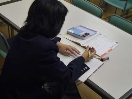 「むくのき学園」では、「グローバル化に対応した英語教育の改革」の方向性に鑑み、小・中学校英語教育重点校として、小学校1年生段階から取組みを進めています。その一環として、検定試験は希望者の能力に応じて、各級でチャレンジしています。学習している皆さんの表情は真剣そのもの。問題集を使いながら、集中して勉強に励んでいました。将来きっと、グローバルに活躍できる大人に成長してくれることでしょう。