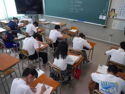 この一週間、早朝から自主学習会を行い、この日のために努力を続けてきました。皆さんの表情には少し緊張の色が見えましたが、しっかりと実力を出し切り、頑張っているようすでした。英語は世界で通じる共通語です。将来のみなさんのグローバルな活躍がとても楽しみです。