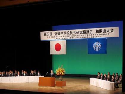 6月10日(金)、和歌山県民文化会館で平成28年度近畿中学校長会研究協議会(和歌山大会)が開催され、分科会で本学園の一安校長先生が、「小中一貫校における教育内容の再編」というテーマで発表され、「むくのき学園」のあたたかく、ともに学び、ともに育つ取り組みについて紹介されました。