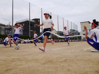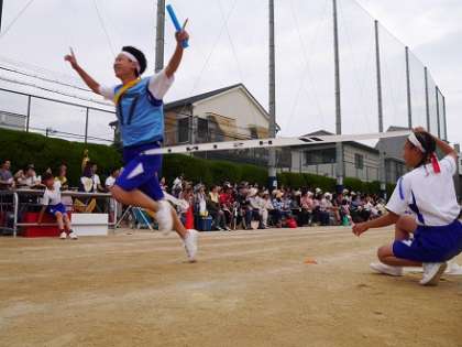 全力疾走は美しいです。50m走、一周走、紅白リレー---各学年の選手たちが次々と駆け抜けていきます。学年が上がるほどに身体が大きくなり、躍動感も増します。リレーのバトンパスはいつも緊張の一瞬です。次の走者に託す。託された走者はみんなの気持ちを背負って走ります。速く走れた人はみんなのヒーローです。速く走ることがむずかしくても、全力の姿に、みんなの絆が深まっていきました。