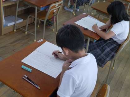 7月1日(金)、中学校は今日で3日目の「期末テスト」が始まりました。連日のテストで少し疲れ気味のようすです。あともう少し、最後まで頑張って取り組んでいました。また、小学生も本日「期末テスト」を実施しました。1週間前から「家庭学習強調週間」を設定し、期末テストにむけて勉強をがんばってきました。今日の「むくのき学園」は学校全体がテストで静まりかえっています。みんな、各教室で真剣にテストに臨んでいました。