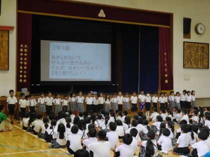 最後に3ヶ月の学園生活を振り返り、校外学習や運動会などのスライドショーを見て、学園全体の一体感を高め「自分や他者を本当に大切にする仲間づくりをしよう」と、思いをあらたにする一日となりました。
