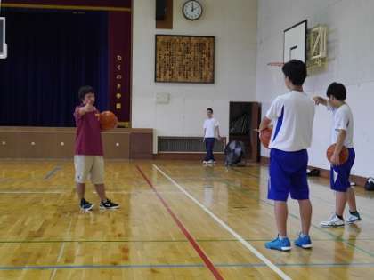 「幼稚園教諭・保育士体験」「アイアンワンワン(美術系)」「古文」「テーピング」「歴史〜クイズ!信長の野望!(歴史)」「バスケットボール講座」「フランス語」の7つのコースに分かれての授業です。