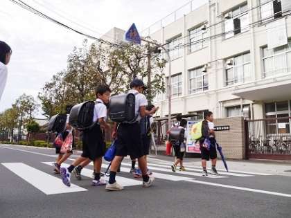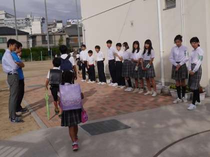 正門前では、中学校風紀委員の皆さんが、さわやかに「朝のあいさつ」とともに、児童生徒を出迎えてくれました。風紀委員の生徒さんをお手本に、1年生から9年生まで、全員が気持ちの良いあいさつができるような学園にしていきましょう。