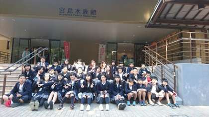 11月3日(水)午前10時半、宮島水族館を見学しました。海の生き物をより身近に感じられる参加・体験型の施設で、瀬戸内海を中心に350種13,000以上の生き物が展示されていました。とても見応えがあり、児童はみんな興味津々でタブレットにそれらをおさめていました。