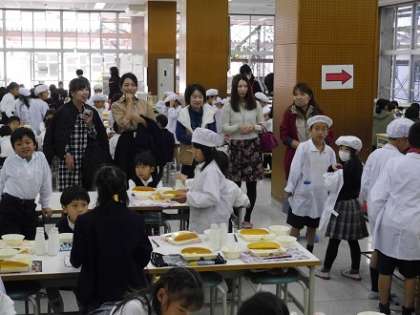 特に低学年の子どもたちは、お母さんやお父さん、おばあちゃんのランチルーム登場にハイテンション。参加者の皆さんには、子どもたちの配膳の様子や、楽しい給食の様子も見ていただき、内容の濃い試食会となりました。