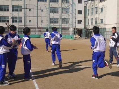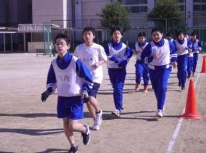 【写真は、体育の授業での持久走(12分間走)の様子です】