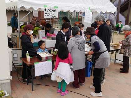 12時から、グランドの模擬店会場では女性部手作りの美味しいたこ焼きやおにぎり、コーヒー等でお腹をふくらましました。