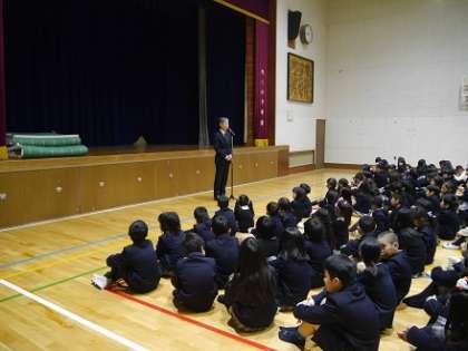 校長先生からは、「今年一年を振り返り、家族をはじめお世話になった方々に感謝しましょう。3学期を元気に迎えるために、早寝・早起き・3度の食事・適度な運動など、規則正しい生活をこころがけましょう。また、勉強で得た知識をムダにしないためにも、復習をしましょう。」とのお話がありました。