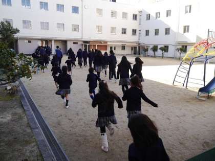 1月16日(月)、今日も寒い朝となりました。第2時限途中、「近畿地方に大規模な地震が発生し、津波警報発令」という想定で避難訓練を実施しました。