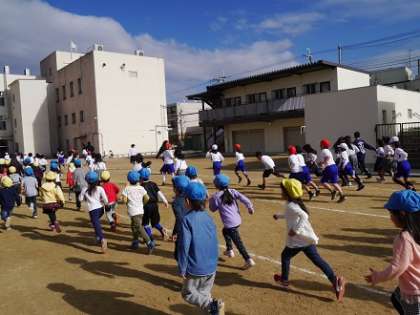 1月17日(火)、今日は昨日より気温が少し上がったものの、とても寒い朝となりました。今日も2限と3限の間の時間帯に、全児童による「耐寒かけ足」を行いました。本日は、近隣のともしび保育園の園児たちが参加してくれました。この寒い中、園児たちは小学生に負けない素晴らしい走りをみせてくれました。むくのき学園の低学年児童たちは、園児に負けじと、全力で走っていました。とても微笑ましい光景でした。