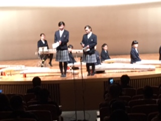 会場全体が静寂に包まれる中、本学園の音楽部がオープニングを飾り、箏で「夕焼けこやけ変奏曲」を披露しました。緊張していましたが素晴らしい演奏で拍手喝采でした。全体演奏では、「糸」を演奏し、美しい音色による見事な演奏で、聴き入る人たちを魅了してくれました。素晴らしい音楽フェスティバルでした。