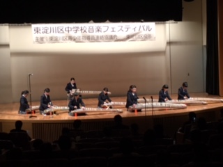 1月29日(日)今日は少し暖かい日となりました。午後1時から、第9回東淀川区中学校音楽フェスティバル(東淀川区青少年指導員連絡協議会主催)が、大阪経済大学70周年記念館フレアホールで開催され、「むくのき学園」から音楽部が参加しました。会場には、公立私立の参加10校の生徒たちやその保護者、学校関係者、地域の方々で盛況でした。